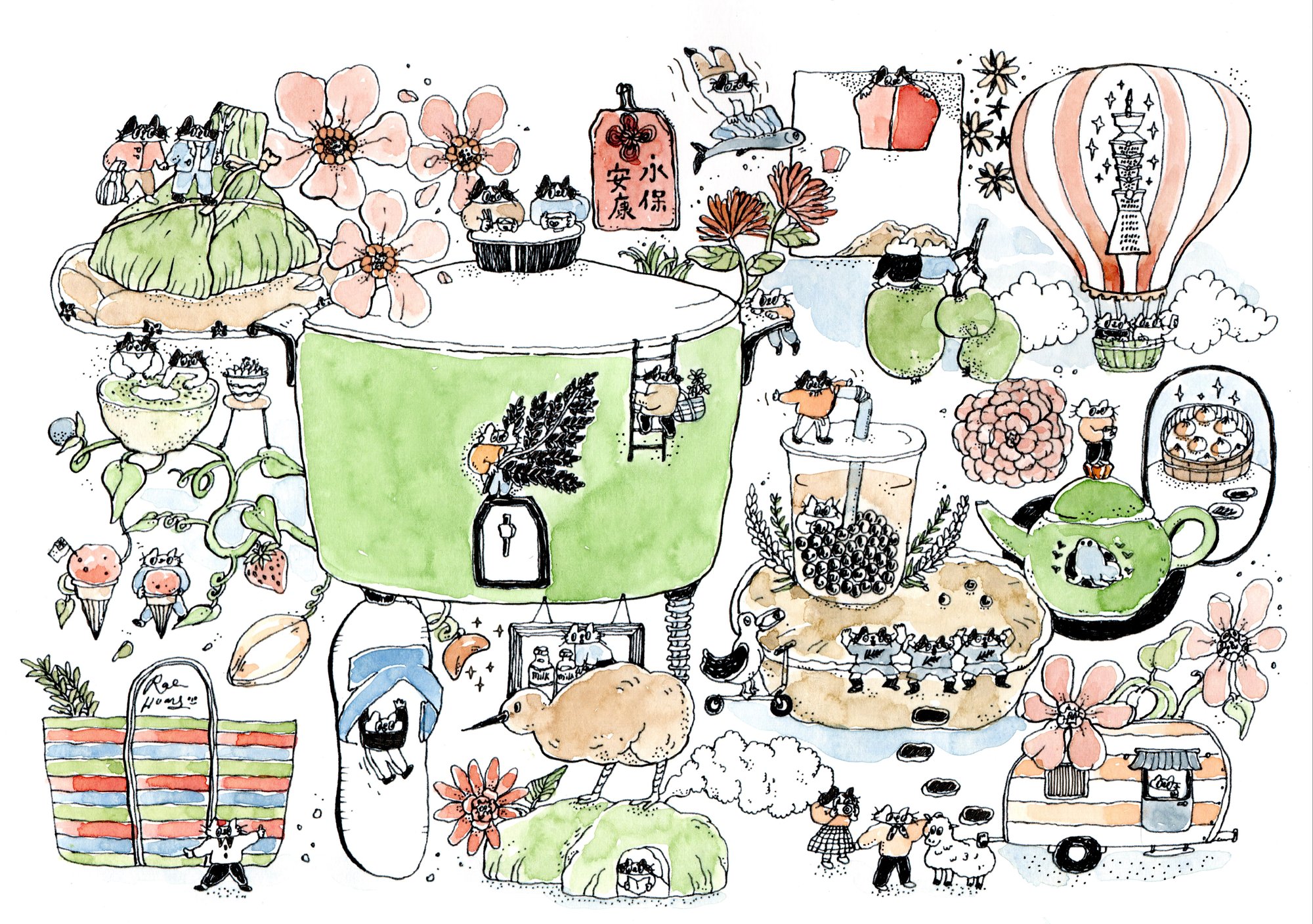 An illustrated map of everyday life between Taiwan and New Zealand.